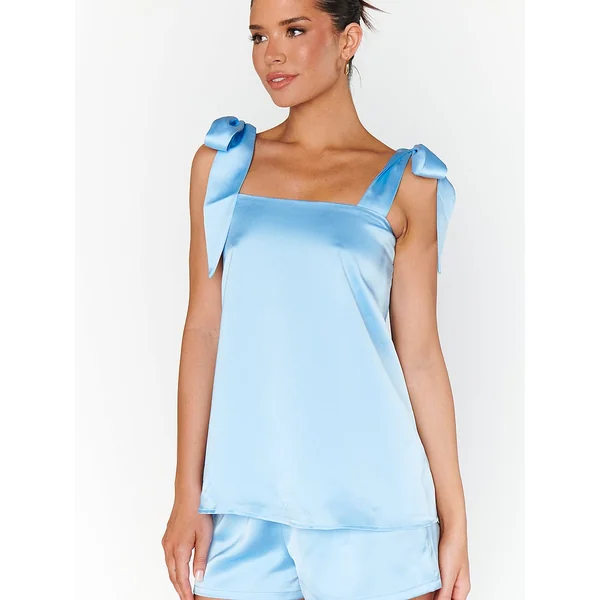 - Cami: self-tie shoulder straps, square neckline, relaxed fit