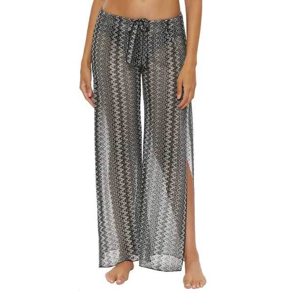 Granite bay pants feature an open weave design, can be worn as a wide leg or harem pant with ties at hem.