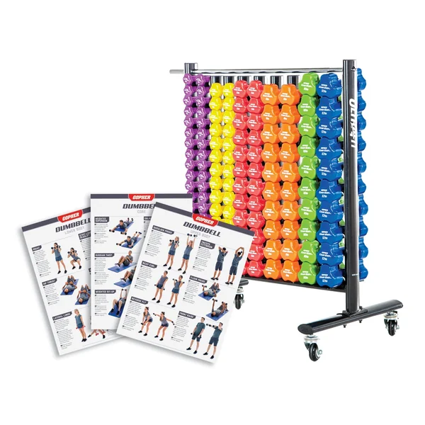 Easily equip the whole class with 64 pairs of dumbbells so each student can find the appropriate weight without taking turns. An included storage rack and training curriculum ensure you have everything you need to start teaching right out of the box.