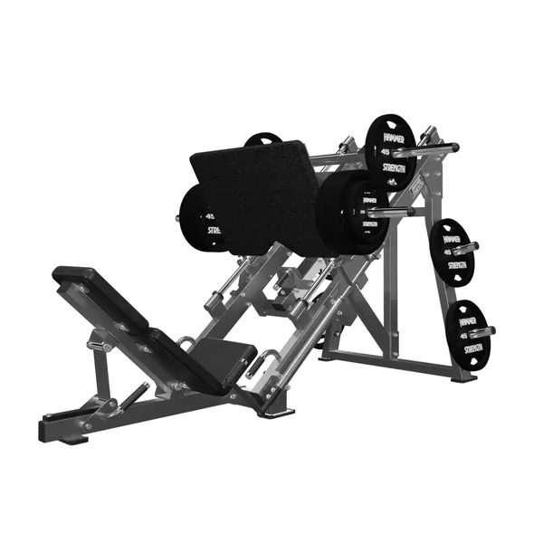 - The angled design targets quads, hamstrings, and glutes with consistent foot placement and improved leverage for heavy loading