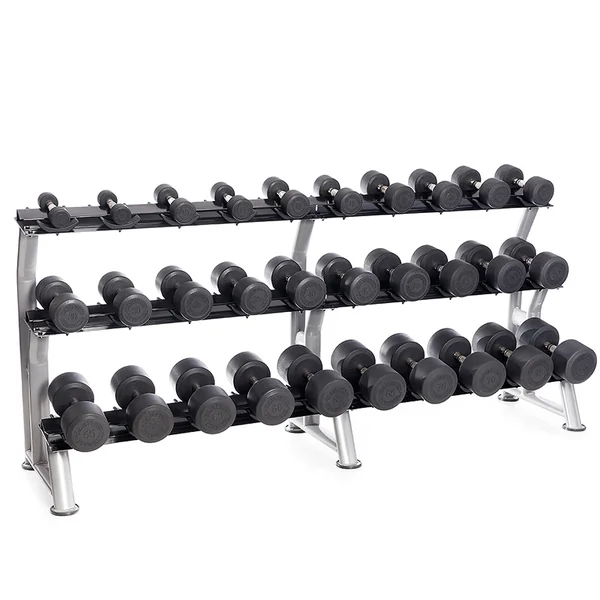 • Holds up to 15 pairs of round head dumbbells.