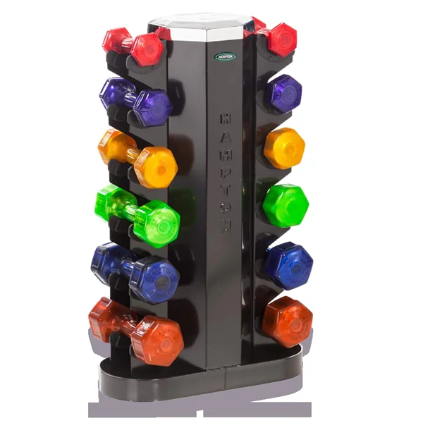 [vc_row][vc_column width=”1/2″][vc_custom_heading text=”FEATURES” font_container=”tag:h2|font_size:45|text_align:left|color:%23441265″ use_theme_fonts=”yes”][vc_column_text]Hampton Jelly Bell-Neoprene-Vinyl Dumbbell Rack Key Features: