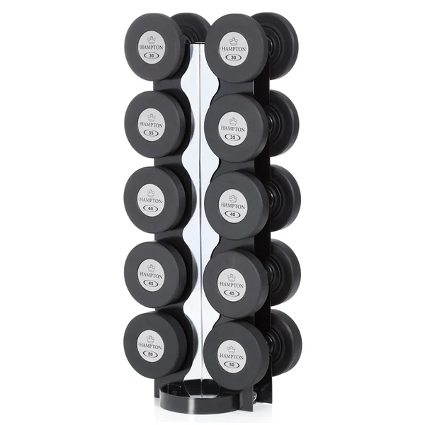[vc_row][vc_column width=”1/2″][vc_custom_heading text=”FEATURES” font_container=”tag:h2|font_size:45|text_align:left|color:%23441265″ use_theme_fonts=”yes”][vc_column_text]Hampton VH-5 Vertical Dumbbell Rack Key Features: