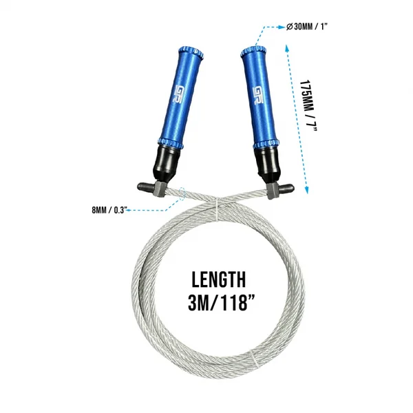 The HAR-1 Heavy Aluminum Jump Rope weighs in at nearly 2 LBs (handle + rope) and is an effective tool for warm-up and building shoulder endurance. The HAR-1 features a 1.2″ (30mm) diameter handle with an oversized 8mm / 0.3″ cable diameter that will push your endurance more quickly than traditional speed ropes.