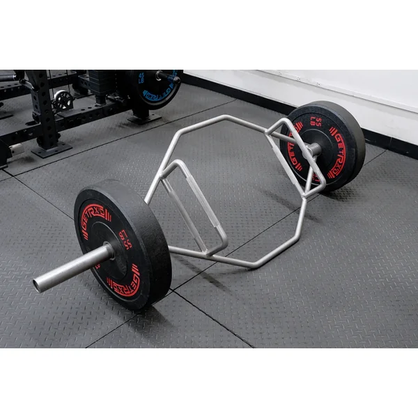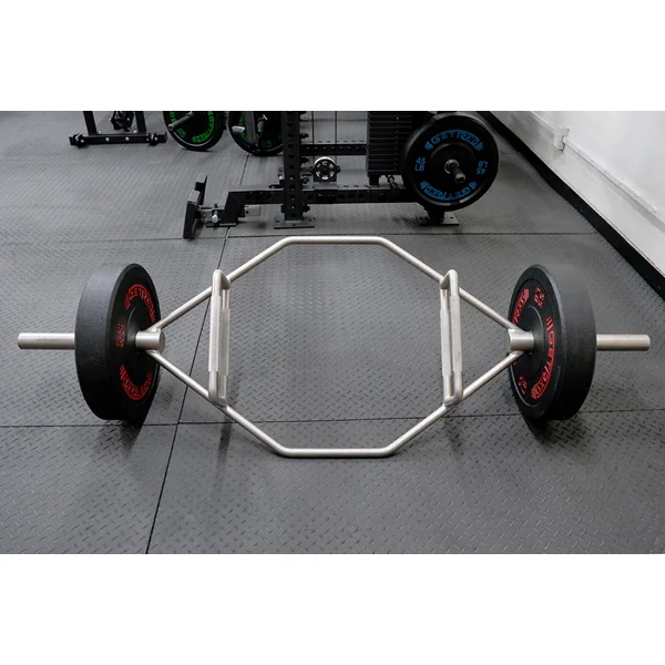 The 72″ Hex Bar is designed to keep weight centered through the body’s midline, allowing athletes to lift heavier with the Hex Bar than they would with a traditional barbell. This is due to the high reduction of stress to the lower back. The Hex Bar features two different knurled grip points that add both convenience and variety to all users who are looking to work on form and grip strength.