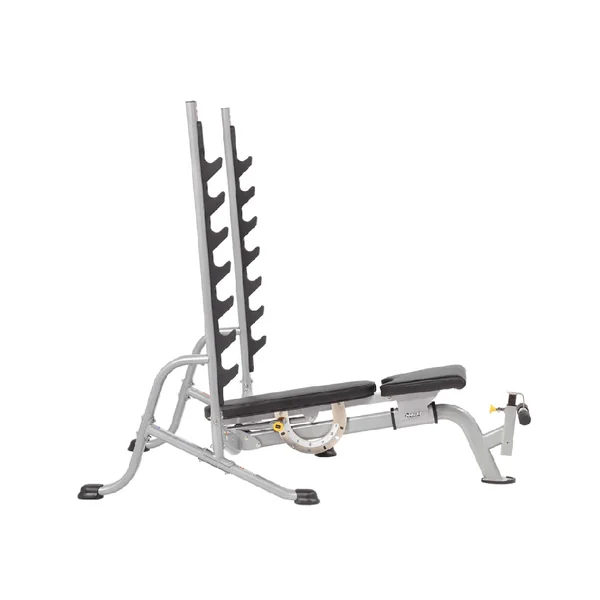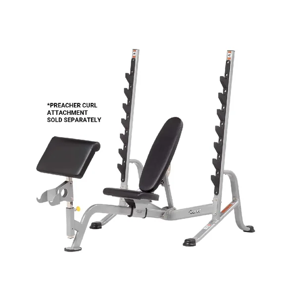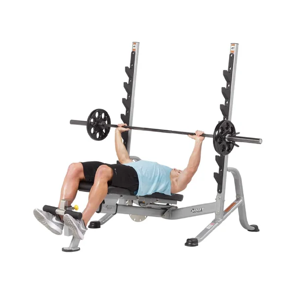 - 7 Position FID Olympic Bench features sturdy, stationary frame design