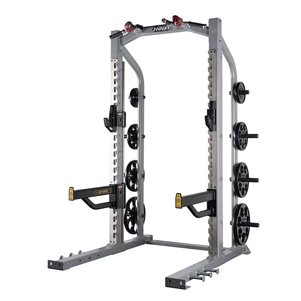 Introducing the HOIST Fitness CF-3365 Half Rack, a state-of-the-art and adaptable commercial fitness solution. Equipped with 20 adjustable points at 3.5” increments, its patent-pending non-removable J-Hooks ensure precise height accommodation. The counterbalanced safety arms, also patent-pending and requiring just 5 lbs. of force for adjustment, deliver a secure workout tailored to various user weights. The rack includes a pull-up station with rock climbing holds, TPU-covered J-Hooks for bar protection and noise reduction, and UHMW Shielding on safety tiers for enhanced durability. Non-removable J-hooks and safety tiers further safeguard your floor from damage.