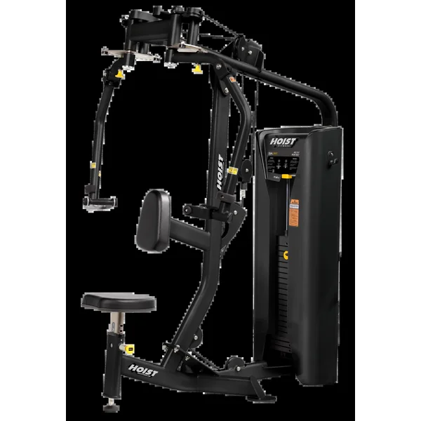 The HOIST® Pec Fly/Rear Delt swiveling handles with pivoting hand grips, provide a variety of hand positions for both exercises. Easy to reach range-of-motion adjustments for both arms with 11 positions come standard. Each exercise arm has dual pivots, allowing users to define their own exercise path. And with seven seat pad adjustments, users of all heights can easily find a safe and comfortable position for both exercises. Unique features such as patented Silent Steel® Weight Racks make HOIST® HD Dual Series the stand-out choice for prestigious gym brands, hotels and universities around the world.