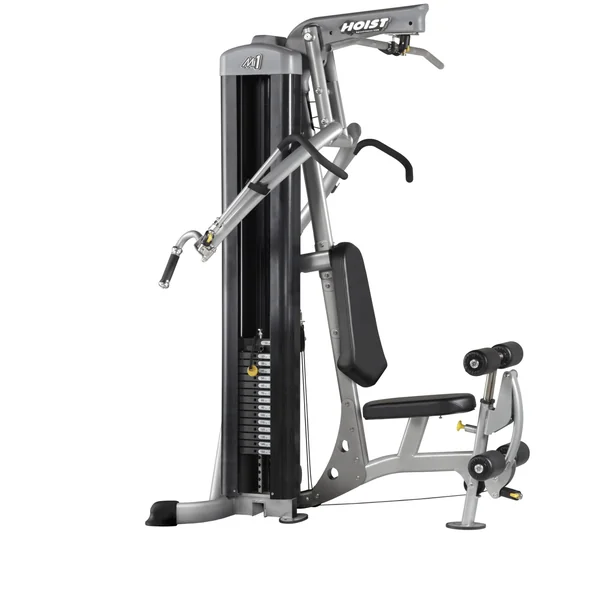 The new Hoist MI1 Home Gym has all the features and quality you expect from Hoist Strength equipment in a minimalist design.  This gym has a compact footprint and frame design.  The articulating press arm system means the the path of motion is determined by the user.  As a result, it feels more like lifting freeweights or dumbbells, but with all the safety and convenience of a cable machine.  Includes high and low pulley positions for a variety of exercises.   Quick release adapters make changing accessories a snap.  Seat and roller positions are adjustable for different size users and different exercise positions.  Leg Press option available.  Lifetime frame, 10 years parts warranty.