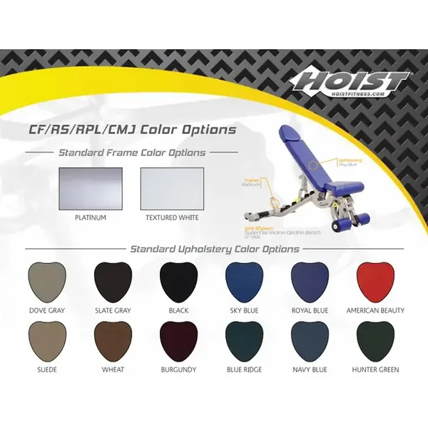 | Upholstery Colors | Standard Upholstery colors: Dove Gray, Slate Gray, Black, American Beauty Red and Blue Jay. |