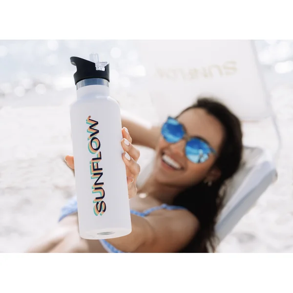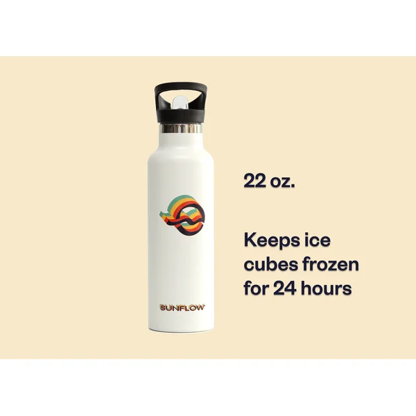 The perfect water bottle for a long day at the beach. Keeps ice cubes frozen for 24 hours. 22 oz.