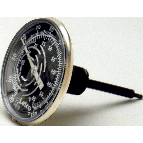 3″ diameter in-line dial swimming pool thermometer with nylon well has a reading scale of 300° – 130° Fahrenheit. 2″ stem. 1/2″ NPT.