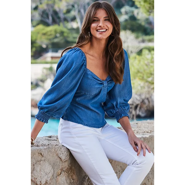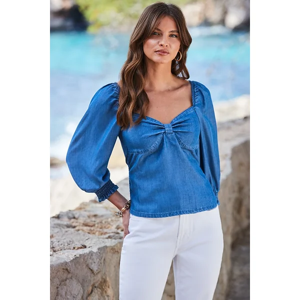 Be the first to review “Indigo Blue Twist Front Denim Top”