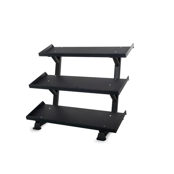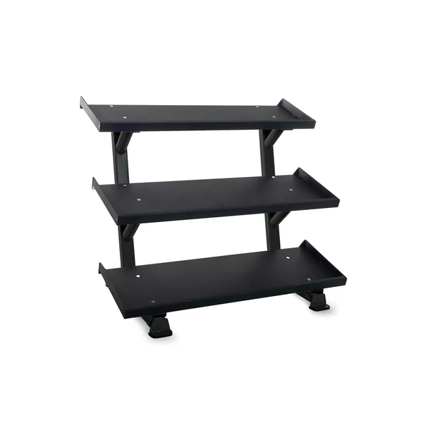 • The three heavy duty tray shelves of this commercial grade rack system are properly spaced and angled for the easy removal and storage of a variety of dumbbells or kettle bells.