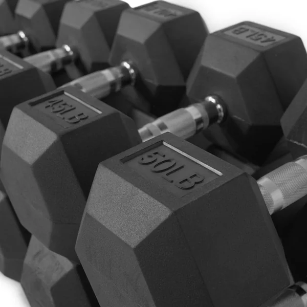 This is a set of the Inspire rubber hex dumbbells from 5-50 pounds, in 5 pound increments.