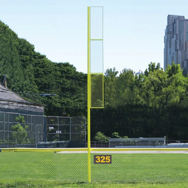 The 18″W x 12’H all-welded wing panel includes a 1-1/2″dia, 13 gauge expanded metal mesh to withstand hard impact. 3-1/2″ OD coated-steel tubing for long-lasting durability. Baseball poles are yellow, softball are orange. Designed for permanent and semi-permanent installation. Sleeves available separately.