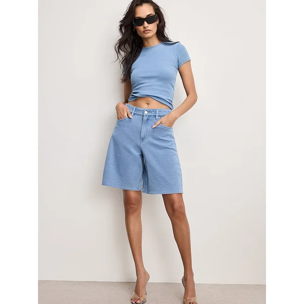 Look like denim, feel like sweatpants. With a relaxed fit and soft fabric, these Bermuda Shorts have a comfy, lowkey vibe.