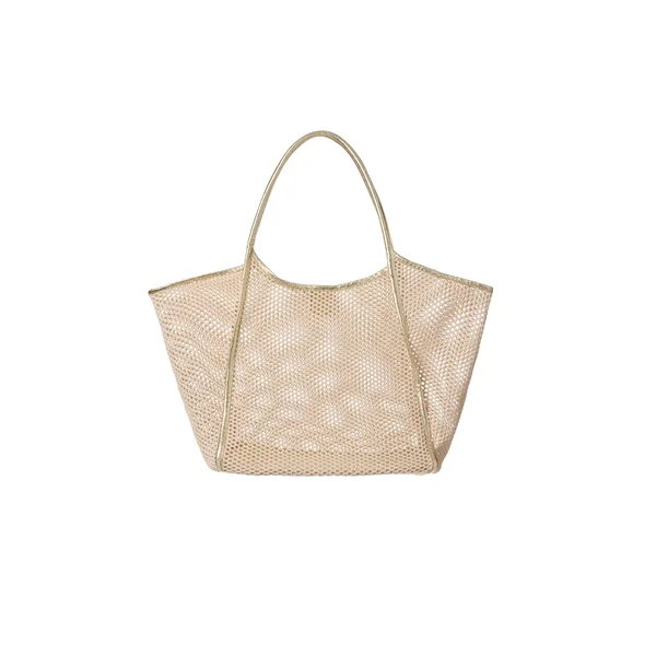 Jojo tote features gold hardware, a removable zippered pouch with an inner slip pocket. Offers double handles and a snap closure.