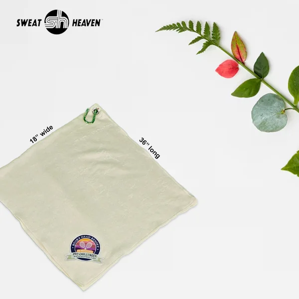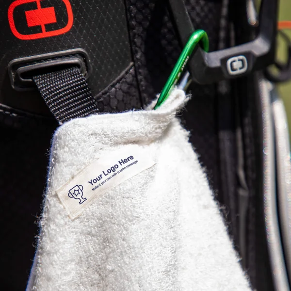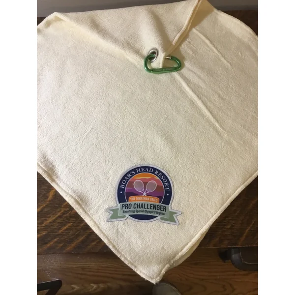 36 ” by 18″ body towel with nickel grommet and 2.5″ long carabiner. Woven logo is sewn onto the body towel for best display.