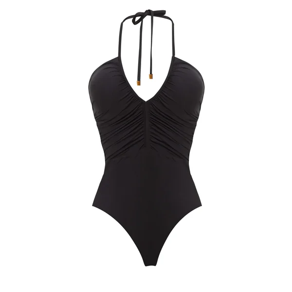 Josie one piece swimsuit features a shirred bodice and v-neckline and adjustable ties at neck.