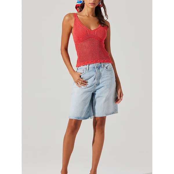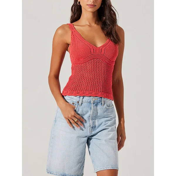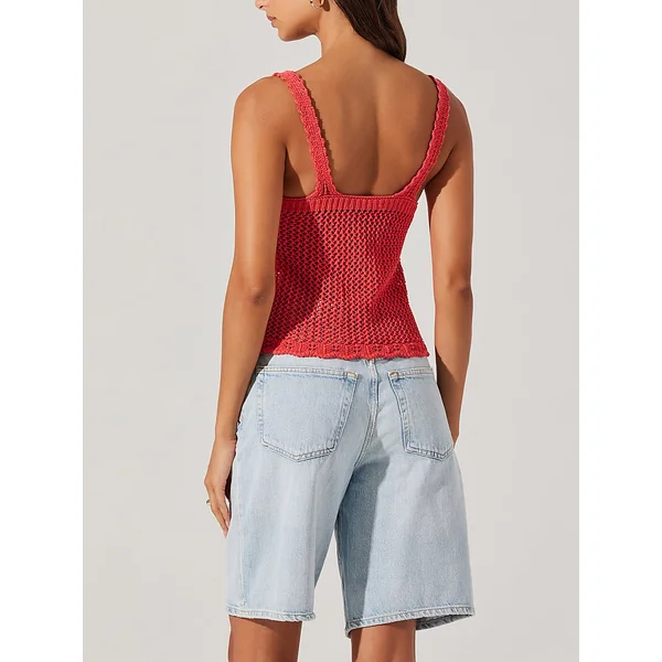 Crocheted from a high-stretch cotton, this boardwalk-ready Tank is finished with a flattering V-neckline and sweet, scalloped trims. Wear it over your Bikini or with your favorite cut-offs for a laid-back summer look.