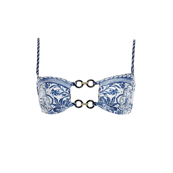 This stunning Bikini Top features a vibrant floral print, ring accents, and an adjustable tie back. Want two swim tops in one? Just remove the straps and, voila, it becomes a bandeau.
