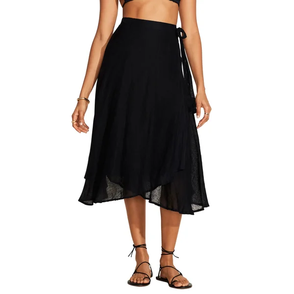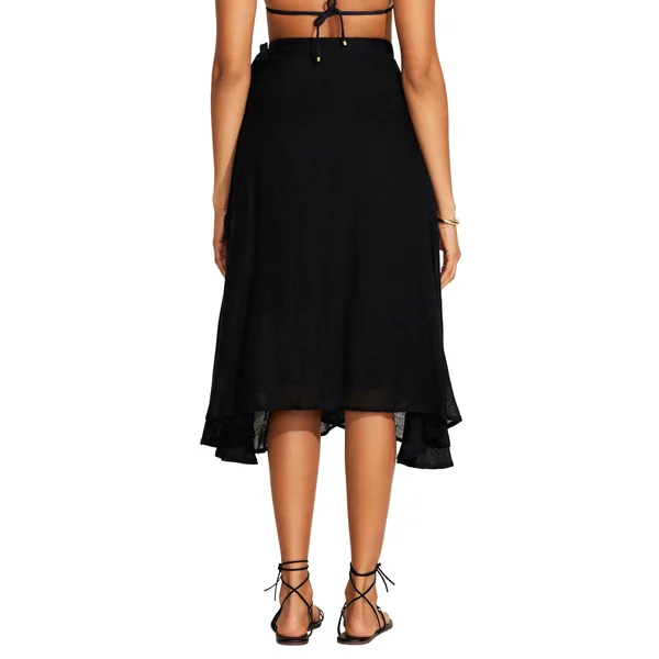Lana wrap skirt features an ultra-flowy silhouette with an adjustable tie waist closure.