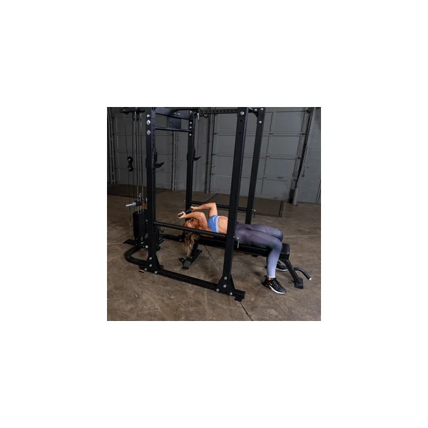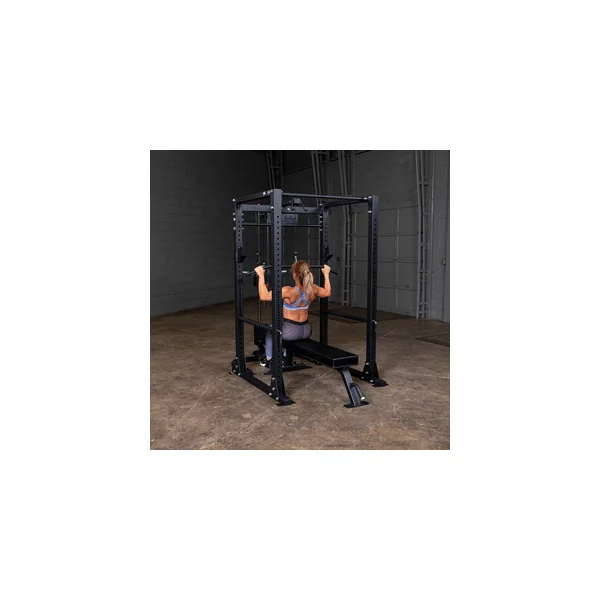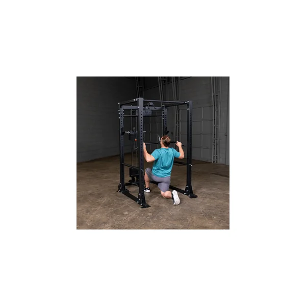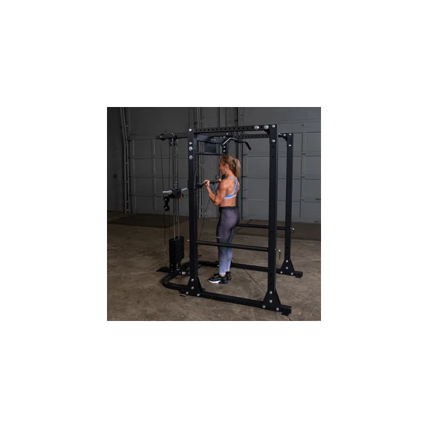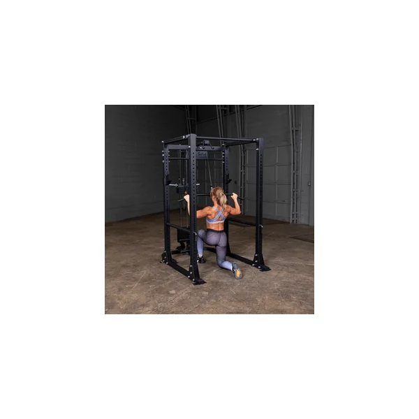 Transform the Body-Solid GPR400 Power Rack into a complete home gym with the GLA400 Lat Attachment. The GLA400 allows users to perform high and low pulley exercises including lat pulldowns, rows, biceps curls, shrugs and more in the comfort and stability of a power rack. Unique design allows the GLA400 Lat Attachment to fit into the GPR400 without requiring additional space or clearance around the rack. The GLA400 is a plate-loaded attachment allowing users to easily add weight plates to the GLA400. Alternatively, the GPR400 is compatible with Body-Solid’s SP150 150 lb. selectorized weight stack. Nylon-coated, aircraft quality cables ensure durability and safety while using the GLA400.