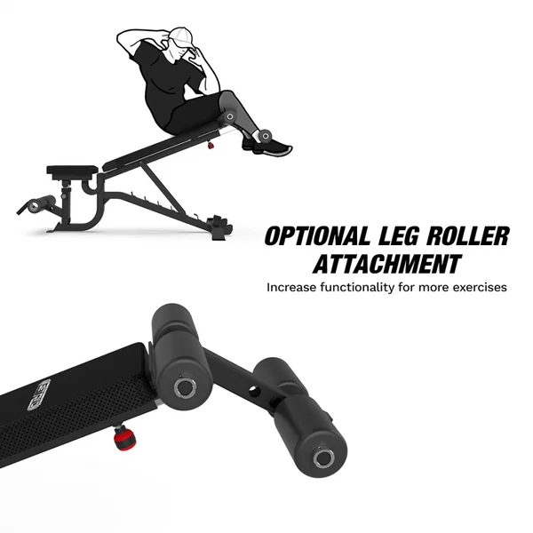 The Leg Roller Attachment for FIDAB-2 / FIDAB-101 / FIDB-300 adds more functionality to Get RX’d adjustable benches. This attachment makes it possible to perform decline sit-ups, Russian twists, and other exercises that would normally require other accessories or extra floor space.