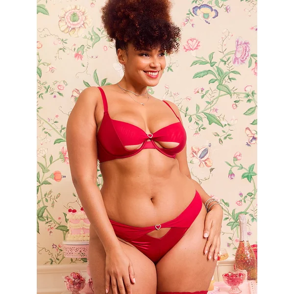 An oh-so-romantic heart-shaped embellishment shines bright in this chic, satin style that features ruched mesh and a supportive silhouette. Make it a match: Wear it with the Libi Panty for the full lingerie look.
