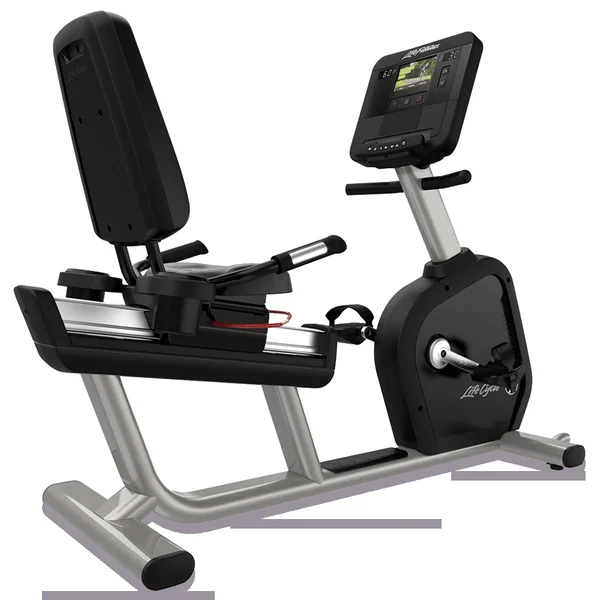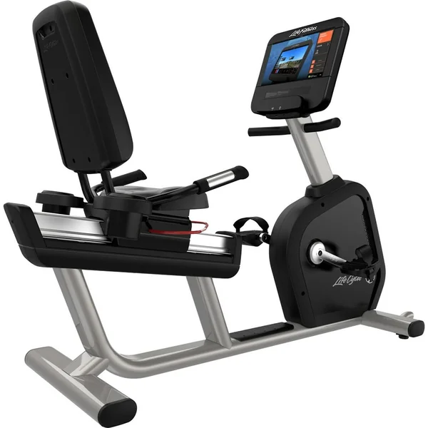The Life Fitness Club Series Plus Recumbent Bike features a step thru design for easy access, a rounded off console with built in touch screen and a more comfortable ergonomically designed seat.