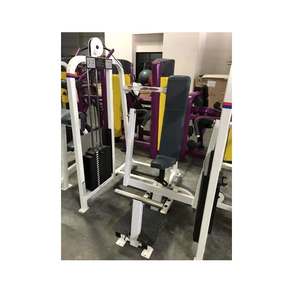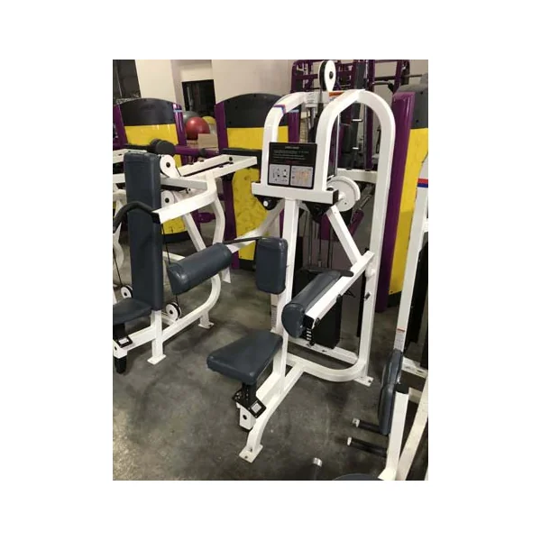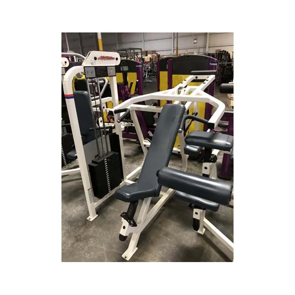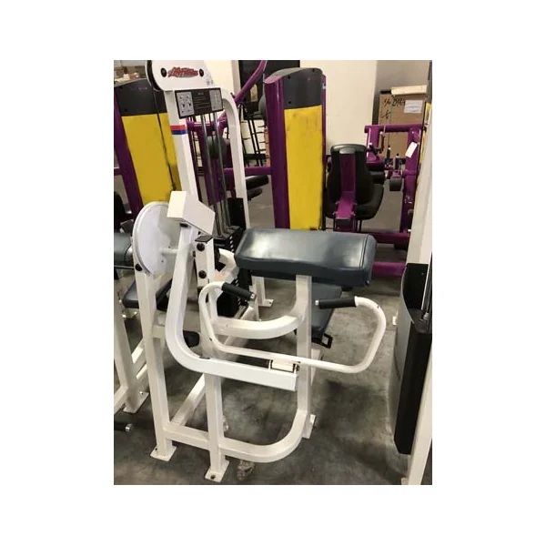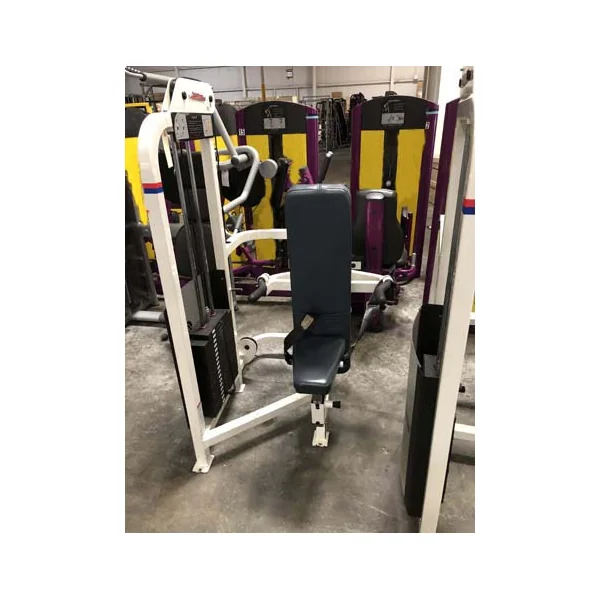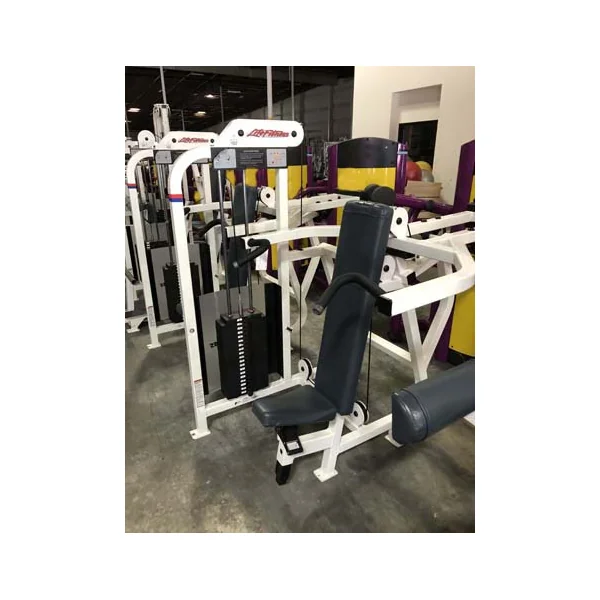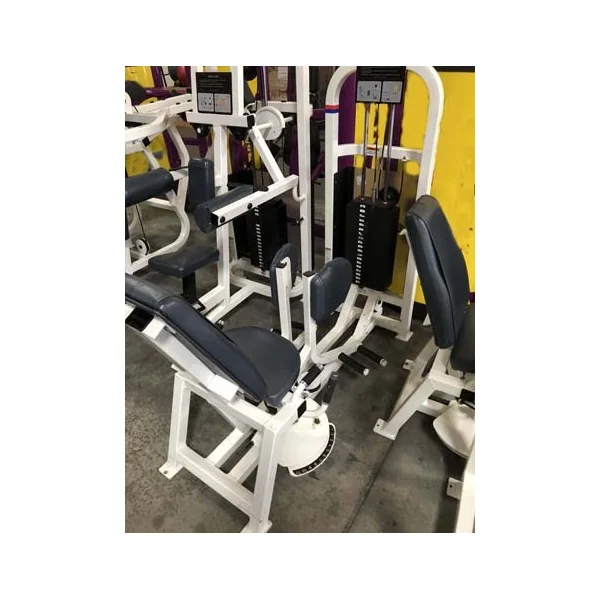 This is a used Life Fitness Pro 1 14 piece Circuit. This package includes a(n) Arm Curl, Arm Extension, Chest Pres, Glute, Hip Abductor, Hip Adductor, Incline Chest Press, Lateral Raise, Low Row, Seated Dip, Seated Leg Curl, (2) Shoulder Press and a Standing Calf.