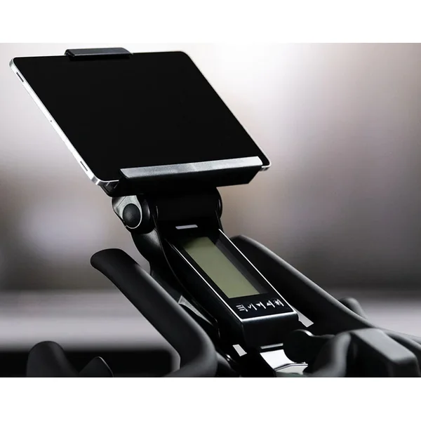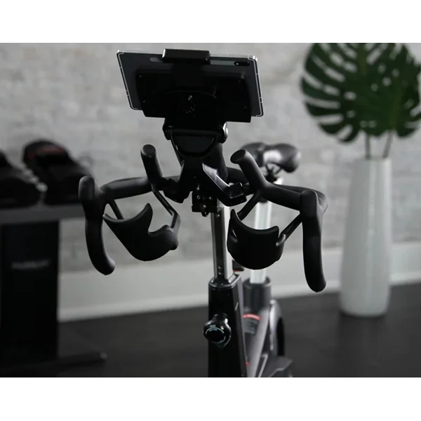 • Secure phone or tablet holder with adjustable viewing angle.