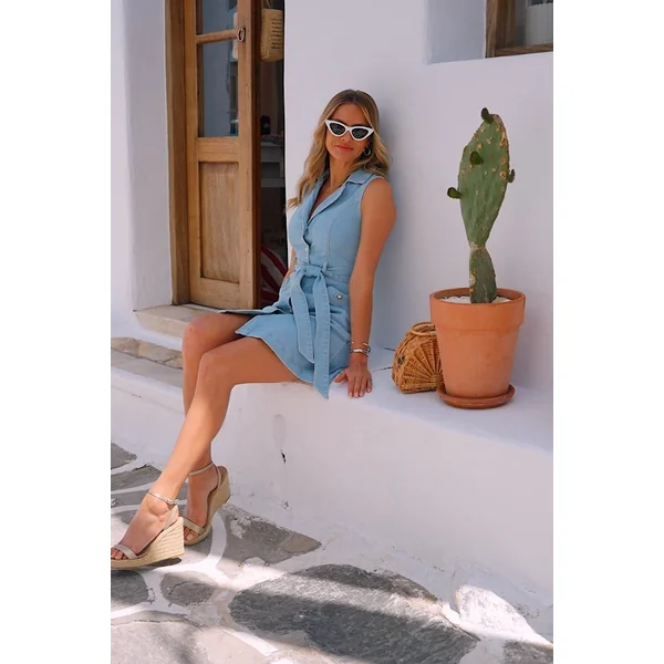 Be the first to review “Light Wash Sleeveless Belted Denim Dress”
