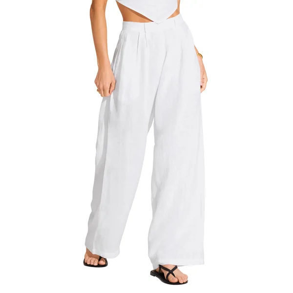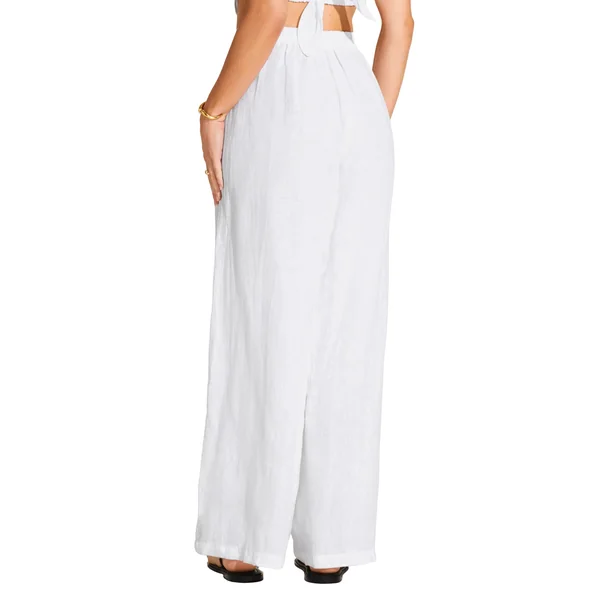 Linen pants feature belt loops, elastic back waist and loose wide leg for a comfortable fit.