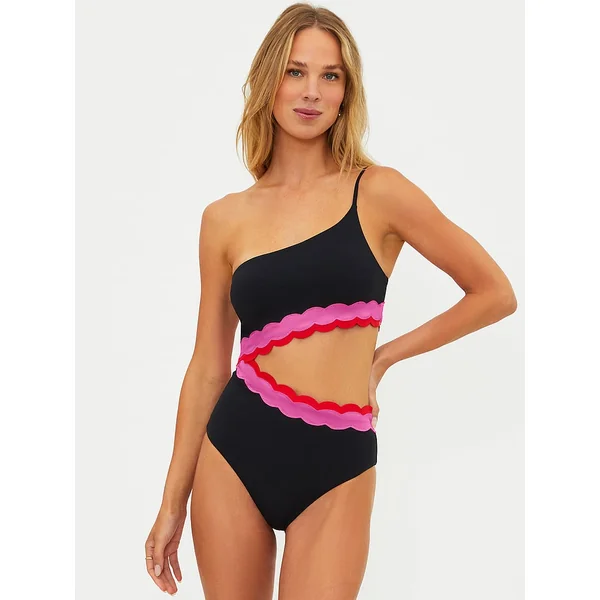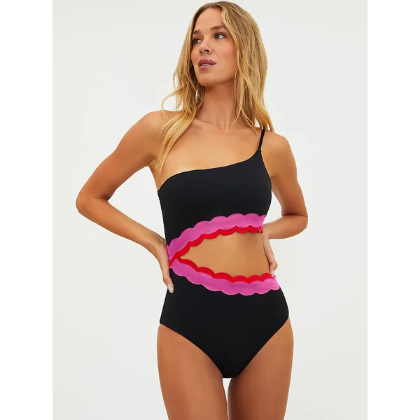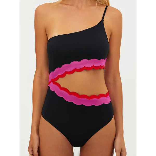 Test the waters. This asymmetrical One-Piece features a vibrant, scalloped cutout detail for eye-catching summer style.