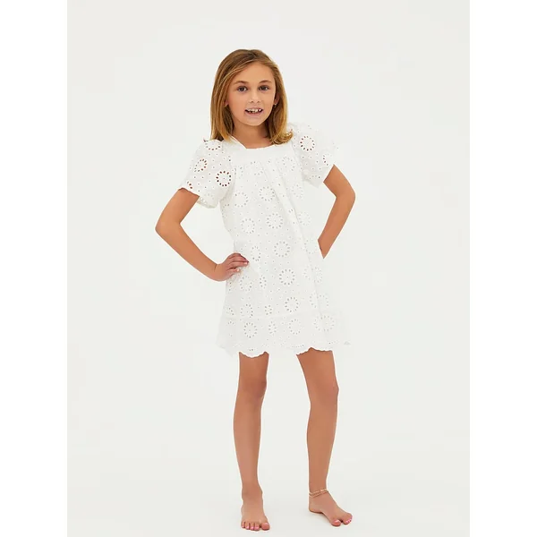 Made for the most stylish of little ones, this sweet mini Dress has a smocked neckline, eyelet details, and balloon sleeves.