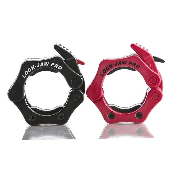 The Lock-Jaw Pro Barbell Collar features a solid-core injection molded nylon resin frame and injection molded pressure pads, making it nearly unbreakable! One hand installation and removal is easy with the large locking lever. A permanent spring snap-latch keeps the collar secured on the bar through the most brutal workouts.