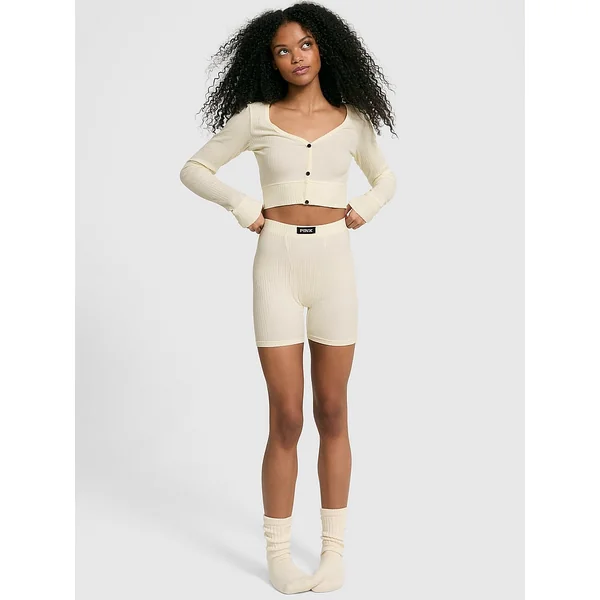 Be the first to review “Lounge Ribbed Cropped Cardigan & Shorts Set”