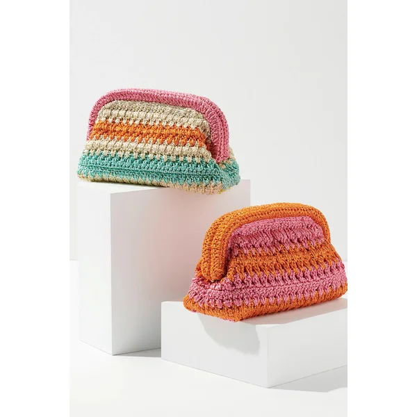 Luna clutch features a multicolored crochet design.