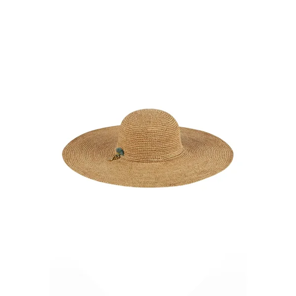 Maria woven raffia sunhat features features delicate pom pom accent