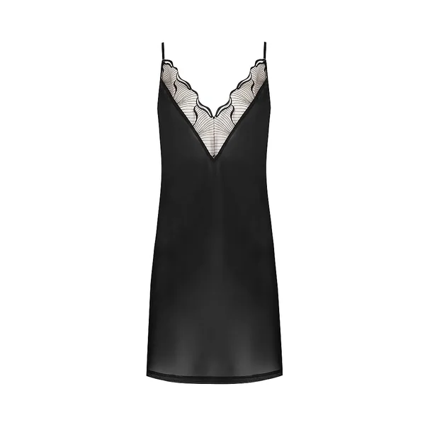 An effortlessly elegant negligee. Crafted with sheer chiffon and featuring a captivating, fluid embroidery down the plunge chest for a luxurious take on loungewear.