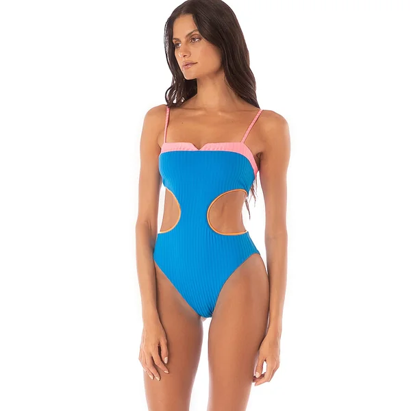 Show off your curves in this bright, one-piece Swimsuit that features bold cutouts and a reversible design (so you get two looks in one).