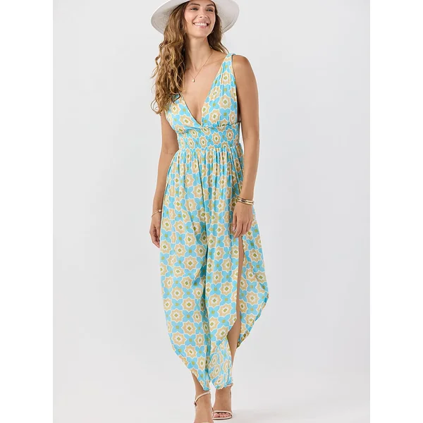 Effortlessly sophisticated, this wide-leg Jumpsuit features a flowy silhouette with a deep v neckline and stretchy covered straps for comfort.