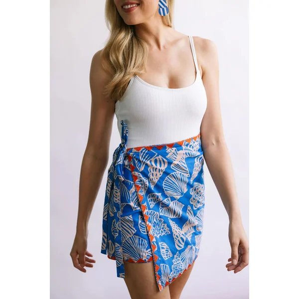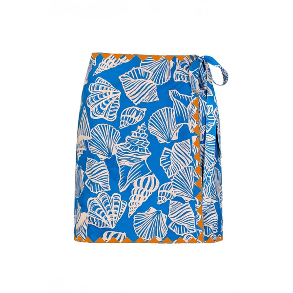 Sarong features a shell print with applique trim and is made from lightweight cotton. Can be worn as a skirt, dress or a scarf.