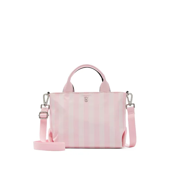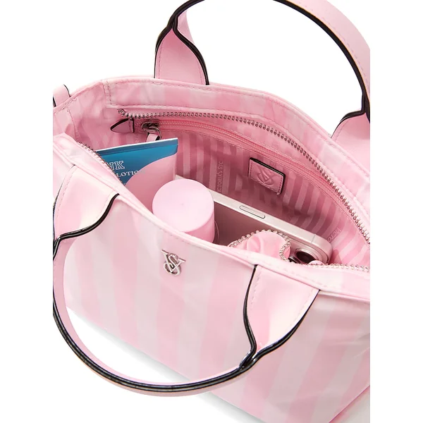 The perfect mini. This compact travel tote features our iconic Heritage Stripe for timeless style. Made with smooth nylon fabric and faux leather top handles.