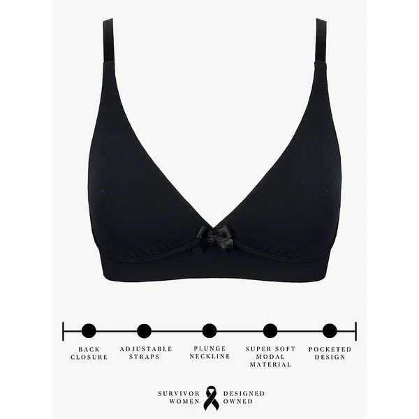 - Pocketed cups that accommodate modesty pads, prostheses, or lightweight breast forms
