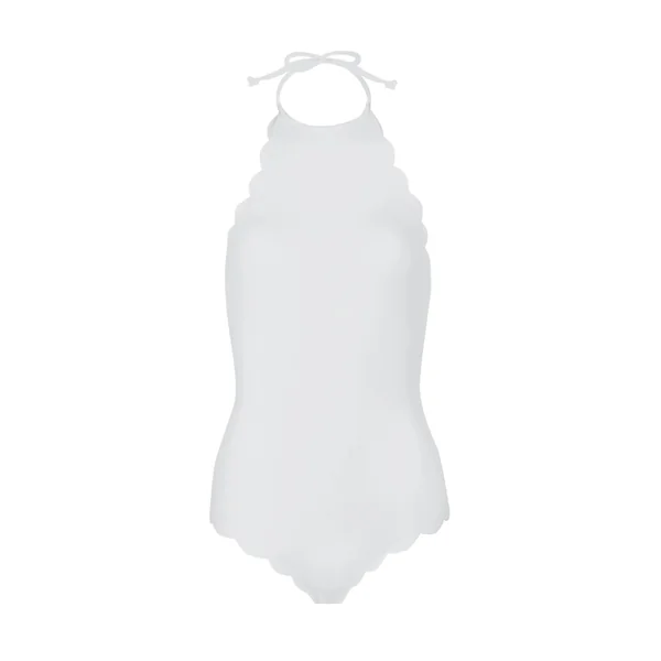 Mott high neck one piece swimsuit featuring signature scallop detail with cross-hatched texture and raw edge for a seamless look. Marysia pieces are made from premium Italian stretch fabric and cut by hand in a couture factory to ensure luxurious fit and quality.