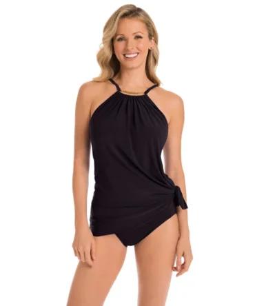 - Miraclesuit’s proprietary Miratex fabric provides allover body control, shapes and slims.