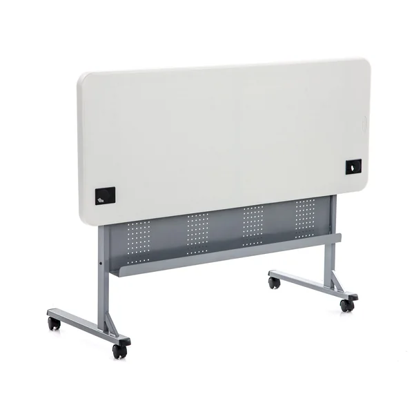 Easily close the table using dual levers, saving valuable floor space in classrooms. Table tops are made of lightweight HDPE blow-molded plastic making them durable yet easy to move. Two grommets help manage cords. The frame and legs are made of powder-coated steel for increased strength. Use the perforated steel panel under the top to store books and technology. Includes a built-in cable channel to conceal wires. Four 2” casters (two of which are locking) allow for easy rolling. Both tables are 24″W. The 60″L table weighs 50 lb, 72″W is 52 lb. Both support up to 700 lb. Assembly required.